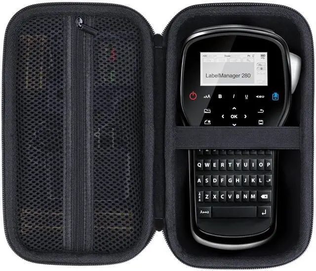 The external: Using EVA and Nylon fabrics and is not easily damaged even when the DYMO LabelManager 160 label nakers used in outdoor environments. This sturdy structure can protect the DYMO LabelManager 280 or LabelManager 420P DYMO label maker while also preventing collisions and dust. In addition, this material has slight water-resisten, protecting DYMO LabelManager 160 DYMO LabelManager 280 or DYMO LabelManager 420P label maker machine from litter drop of water ^^