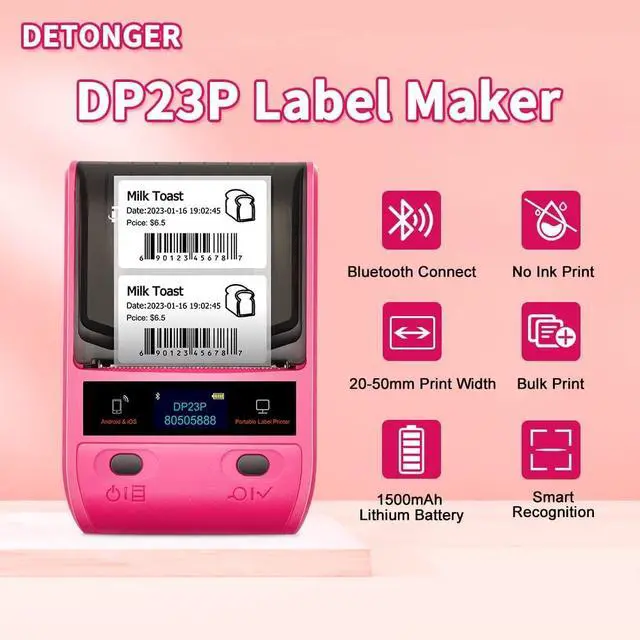 Wide Application: DETONGER DP23P Label Maker supports label width up to 48mm, which can be widely used for food labels, spice jars, bottles, clothing storage boxes in the home, price labels, jewellery labels, product information, QR codes, bar codes, brand logos in small businesses, name labels, clothing labels in schools, and office supply labels. Not only in life but also in work, it can meet our different needs very well ^^ Inkless and