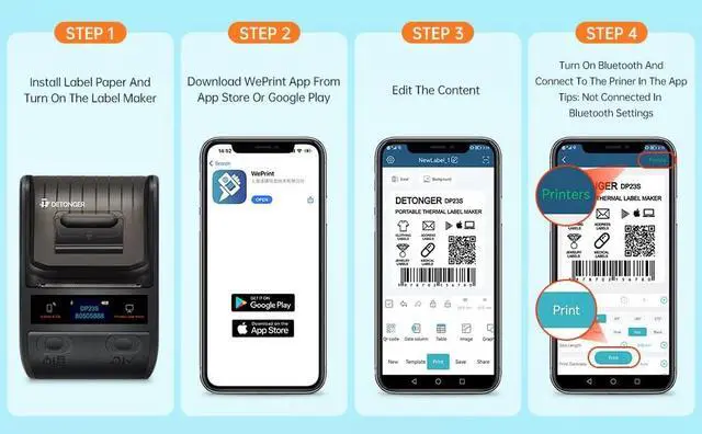 Bluetooth Label Maker: Using direct thermal technology with a high-speed chip, it provides 203 DPI print quality. Enjoy high speed and convenient printing without relying on ink or toner. This printing solution is economical, making it ideal for home and small business use. No buttons needed, all functions can be controlled via Bluetooth connection to our 'WePrint' APP ^^