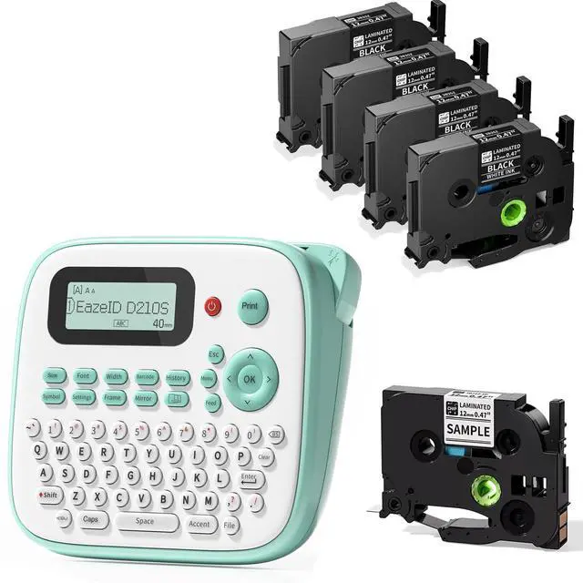 - : EazeID D210s label maker machine uses thermal transfer printing, using 12mm 0.47 laminated white tape, making them durable, waterproof tape, scratch-resistant, fade-proof, and temperature-resistant. They're perfect for a wide range of uses, like labeling jars, creating logos, tagging items, and organizing both at home and in the office