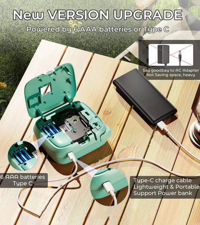 : The EazeID D210S portable label maker machine can be powered by either the included Type-C cable (included) or 6 AAA batteries (not included). This gives you the flexibility to use it anytime and anywhere