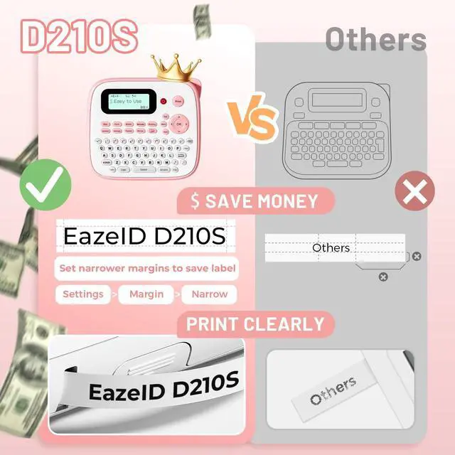 Convenient Keyboard: The D210S pink label maker features one-touch keys that provide quick access to fonts, symbols, frames, and templates. You can preview your work on the display screen, ensuring that your labels look perfect before printing. This feature minimizes errors and saves time, making label creation simple and efficient. Whether you're organizing your home or office, the D210S label maker machine with tape ensures you get professional results every time ^^ Lightweight and Portable for