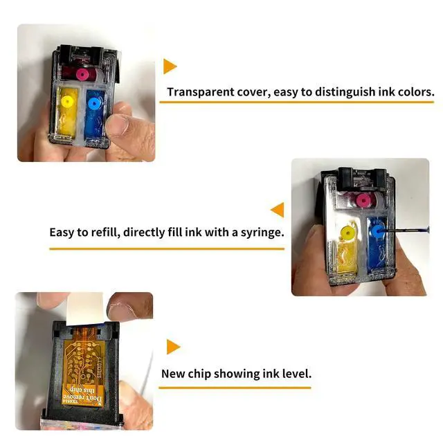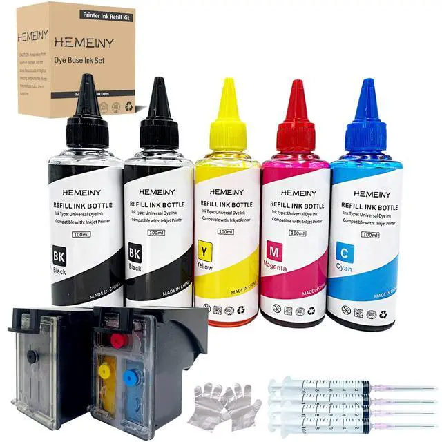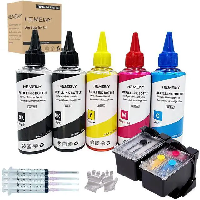 Ink Bottles: Black x 200ml (2 bottles), Cyan x 100ml, Magenta x 100ml, Yellow x 100ml ^^ 2) The Ink Cartridges are Refillable ones, Can be refilled again and again. It comes with Transparent cover, there are holes for refilling, VERY EASY FOR REFLIING. Replacement for Hp 65 Ink Cartridges, 65XL Ink Cartridges, Remanufactured 65XL Ink Cartridges ^^ 3) Compatible with