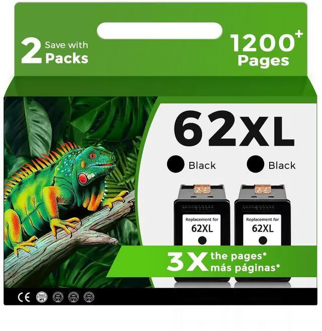 ^^ Package Contents: 2 Pack Remanufactured Ink Cartridge Replacement for hp 62XL ink cartridges - 62 XL 2 Black