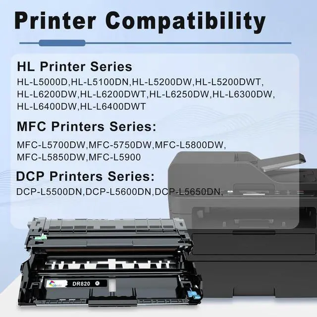 ^^ Compatible for Printers: DR820 DR-820 drum unit compatible with HL-L5000D, HL-L5100DN, HL-L5200DW, HL-L5200DWT; HL-L6200DW, HL-L6200DWT, HL-L6250DW, HL-L6300DW, HL-L6400DW, HL-L6400DWT; MFC-L5700DW, MFC-L5800DW, MFC-L5850DW, MFC-L5900DW; MFC-L6700DW, MFC-L6750DW, MFC-L6800DW, MFC-L6900DW; DCP-L5500DN, DCP-L5600DN, DCP-L5650DN Printer ^^