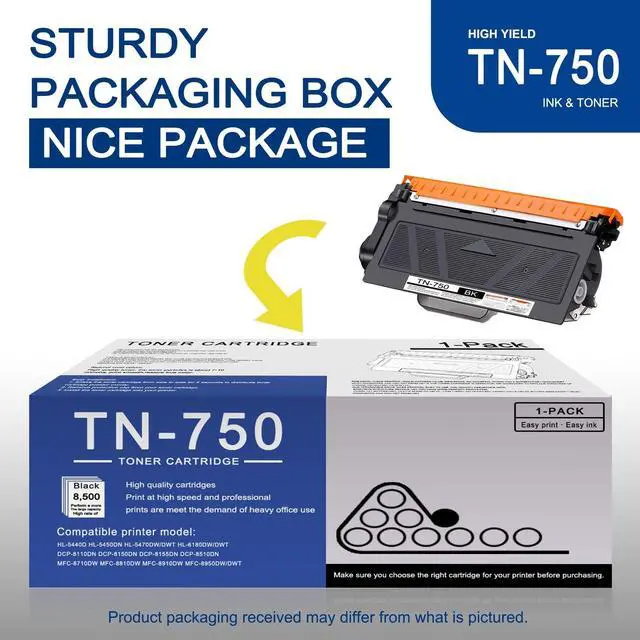 ^^ Page Yield: 8, 500 pages per TN750 Black Toner Cartridge at 5% coverage (Letter/A4). ^^ Compatible for