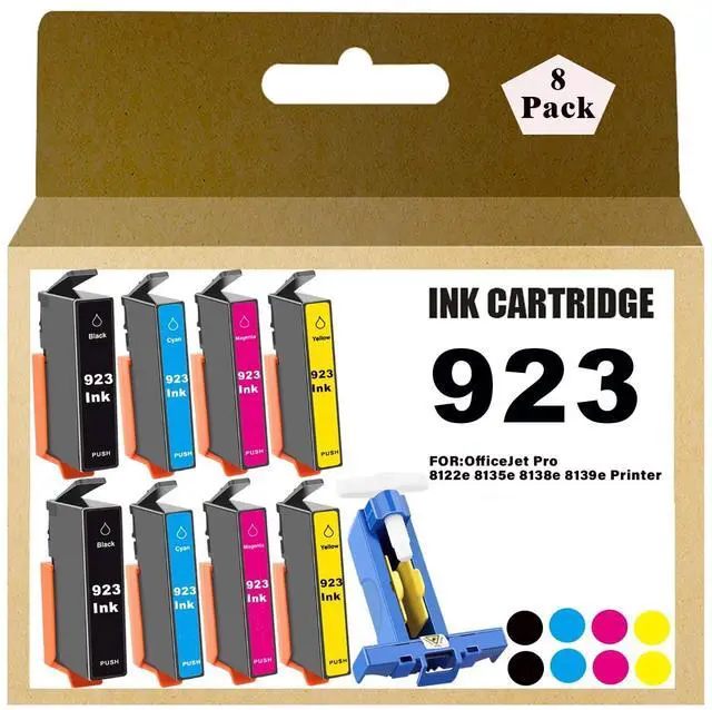 923 Ink Cartridges Combo Pack Replacement for HP 923 Ink Cartridges Use for 8122e OfficeJet Pro 8135e 8138e 8139e Printer Ink Without Chip 8 Pack 2*Black 2*Cyan 2*Magenta 2*Yellow