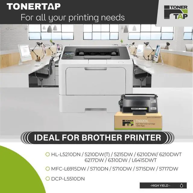 ^^ Wide Brother Compatibility TN920XL for Brother PrinterWorks with Brother HL-L5210DN, HL-L5210DW, HL-L5210DWT, HL-L5215DW, HL-L6210DW, HL-L6210DWT, HL-L6217DW, HL-L6310DW, HL-L6415DW, HL-L6415DWT, HL-EX415DW, DCP-L5510DN, MFC-L5710DN, MFC-L5710DW, MFC-L5715DW, MFC-L5717DW, MFC-L5915DW, MFC-L6810DW, MFC-L6915DW, and MFC-EX915DW.