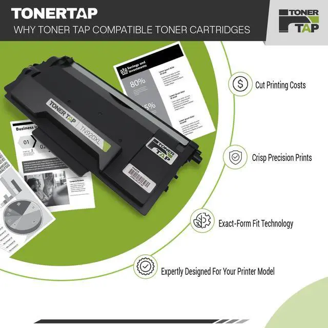 6, 000-Page High-Yield TN920XLEngineered for volume printing, this TN920XL toner cartridge delivers ~6, 000 pagesideal for offices and frequent users. ^^ Japanese Micro-Toning TechnologyThe TN920XL toner features TonerTap Japanese toner with smaller, rounder particles that deliver sharper text and finer details in both graphics and photos. ^^ OEM-Standard Magnetic Roller & Doctor BladeBuilt to original specs for smooth, jam-free performance and consistent results from first to last page. ^^ Eco-Efficient Toner CartridgeThe TN920XL toner delivers high toner utilisation and a low waste powder rate, supporting sustainable printing with reliable performance.