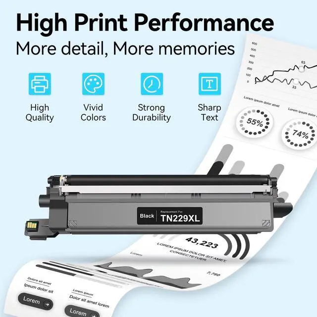 LEMERO UEXPECT Quality: TN229 TN229XL toner offers excellent print quality, providing optimum print results with crisp fonts and sharp details so as to make the documents become more professional