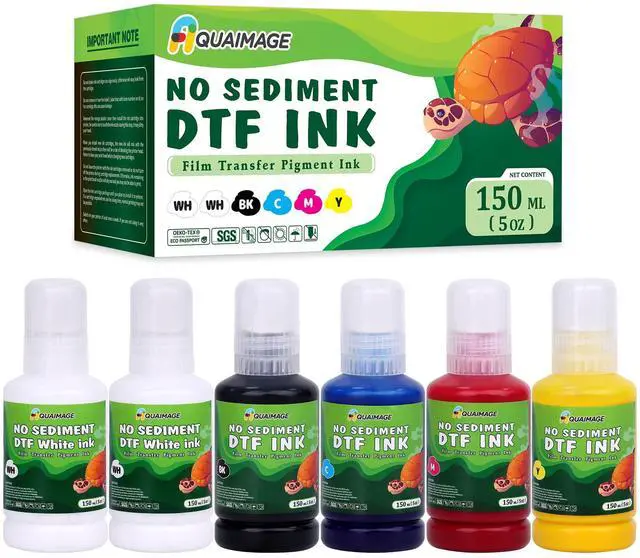 And there is no need to shake the ink before use, and the service life is extended from 12 months to 18 months. ^^ Package ContentsAquaimage DTF Heat Transfer Film Printing Ink Kits Includes 150ML 8.5 oz)x6 (White x 2, Black x 1, Cyan x 1, Magenta x 1, Yellow x 1), User Manual x 1, Nitrile Gloves x 2 ^^ 100% Money Back & 24 hours ServicePlease read the instruction manual to get further details you need about DTF ink. If You have any questions with the dtf ink, Please contact us anytime, We will respond with in 24 hours.