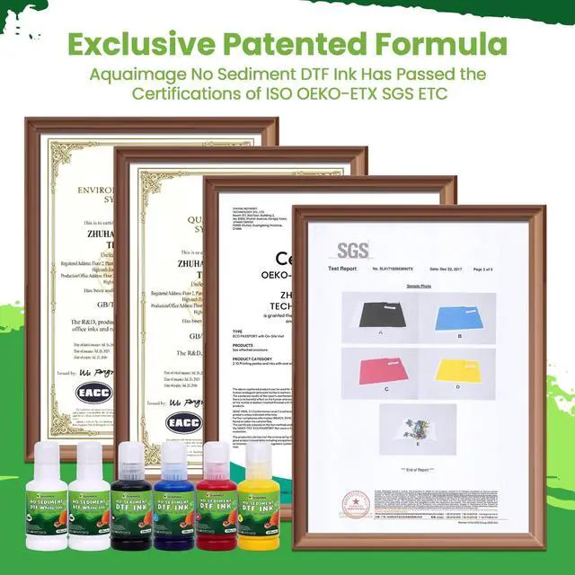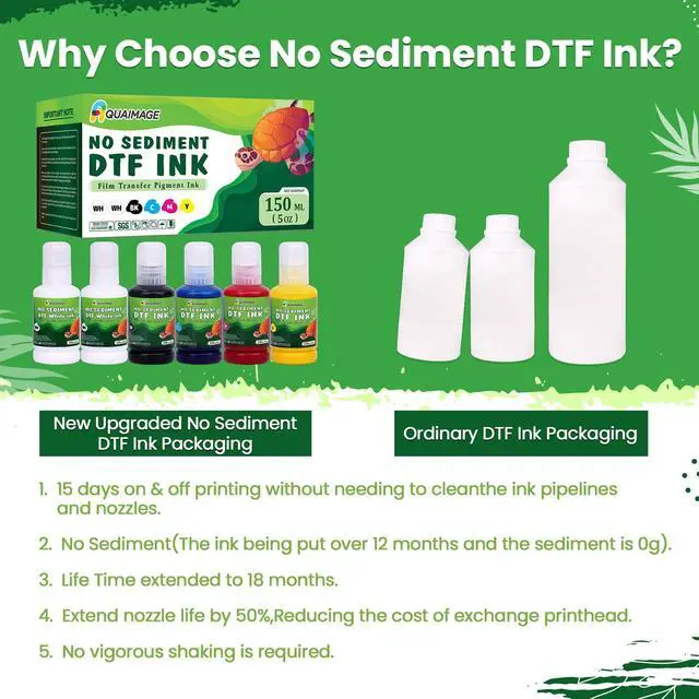 New Upgraded No Sediment DTF InkAquaimage DTF Ink features an exclusive patented formula that combines German solvents with Japanese resins and colorants. This unique formula allows the ink to be used for more than 12 months without any sedimentation. And has excellent ink fluidity and color fastness, Premium quality with high coverage for all DTF Films. Wide gamut, high color density and saturation. Washable and not easy to fade. ^^ Wide CompatibilityFor DTF and all 6 and 8 color printers can be converted to DTF with cadlink software. For ET Series (ET-8550, ET-8500, ET-15000 ET-2400, ET-2800, ET-2803, ET-2850, ET-3850, ET-4800, ET-4850, )