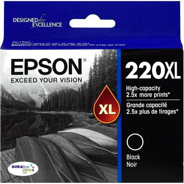 OEM Epson T220XL120 (220XL) High-Capacity DURABrite Ultra Black Ink Cartridge