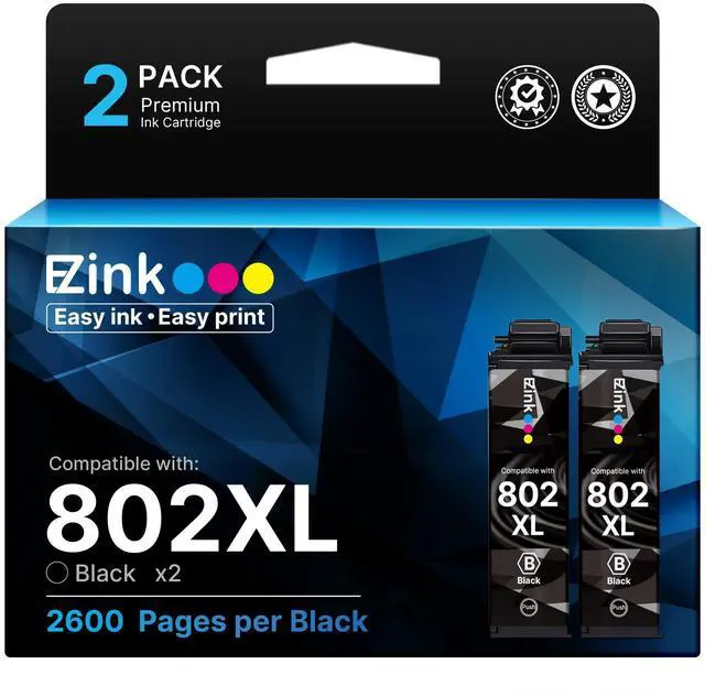 Product Name: E-Z Ink remanufactured high yield ink cartridges replacement for Epson 802XL 802 XL T802XL T802 XL black ink cartridges ^^