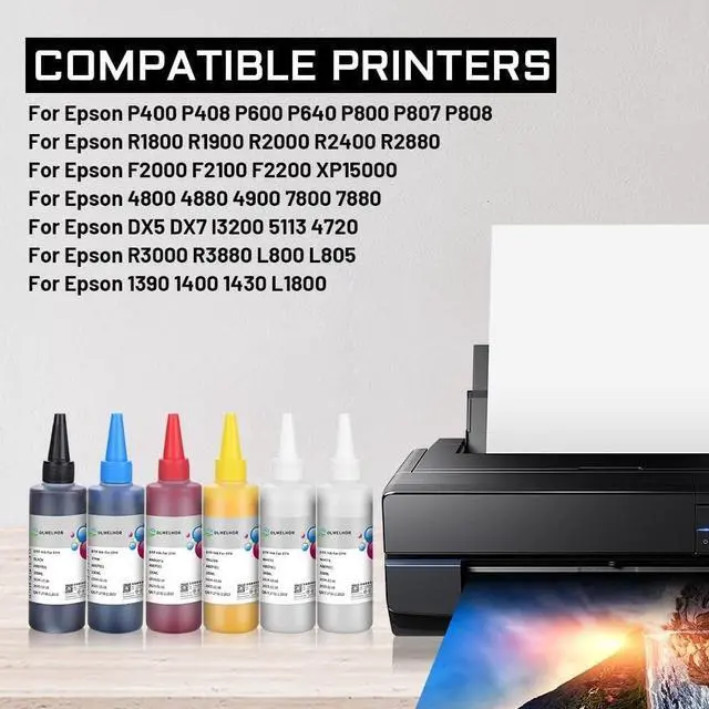 DTF Ink Refill for XP600, I3200, ET8550, ET8500, ET2800, ET2803, ET2850, XP15000, L1800, R2400, L800, 1430, P400/P408, P600/P608, P800, R1390, R1800, R1900, R2000, R2880, R3000, L805, R1390, 4720, I3200, XP600, DX7, DX5, 5113, 1430, TX800, P400, P408, P640, P600, P608, P800, P5000, P6000, R1800, R1900, R2000, R2400, 4800, 4880, 4900, 7880, 7890, R3000, R3880, F2000, F2100, F2200, P700, P900, XP-15000, and more DTF printers.