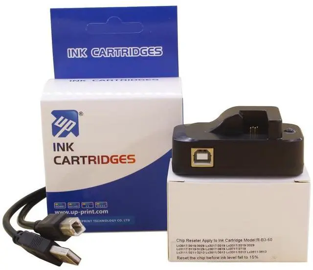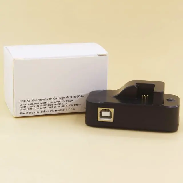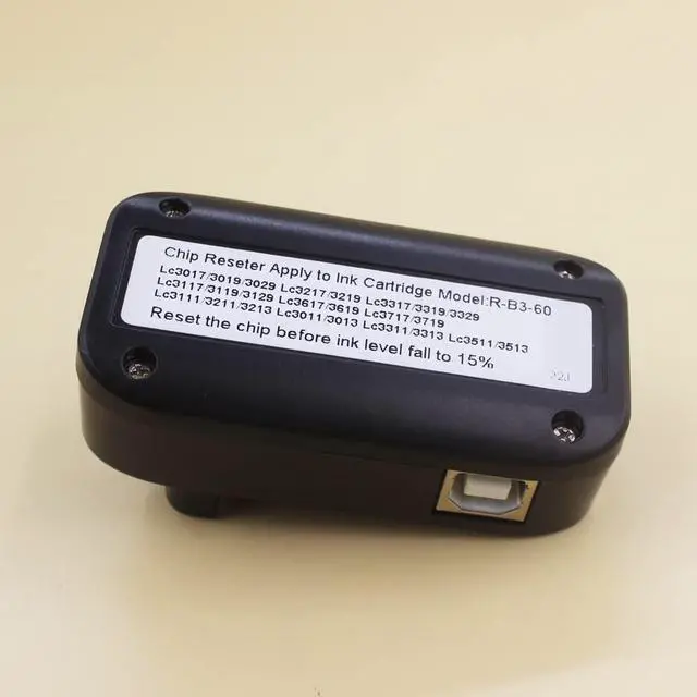 Chip Resetter life: 60 times! It can not used on SETUP / Initialize cartridge chip and third party chipthis link is resetter only. Genuine Ink cartridges are sold seperately. USB cable packed in box. Please check the manual ( the third listing photo or the video) before using. 1) Prepare our chip reseter / Printer USB cable / Ink cartridge. 2) Chip reseter conntect to 5V power (such as computer USB interface) by USB cable. resetter LED light keep red flashing. it is ready to work.