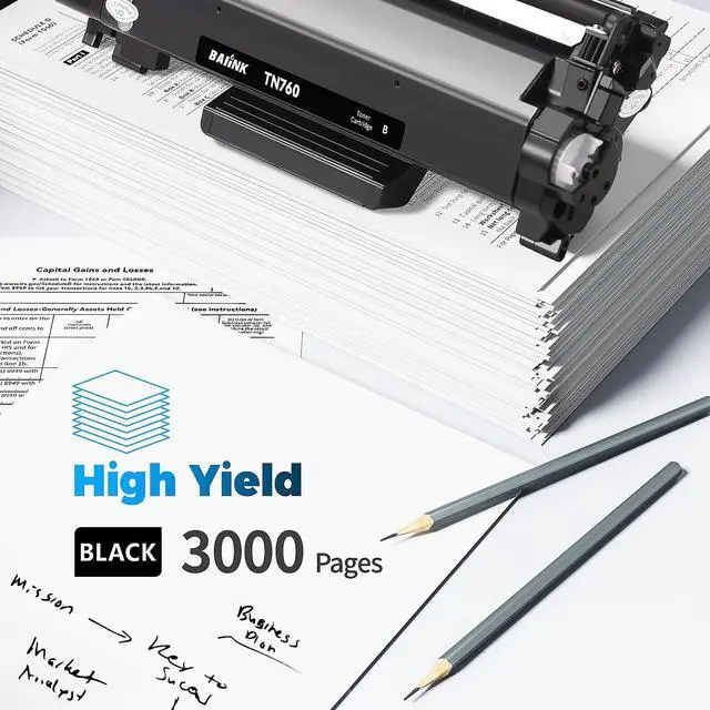 High Page Yield: Up to 3, 000 pages for TN-760 toner cartridge black high yield (Letter/A4, at 5% coverage, depends on printer and usage) ^^