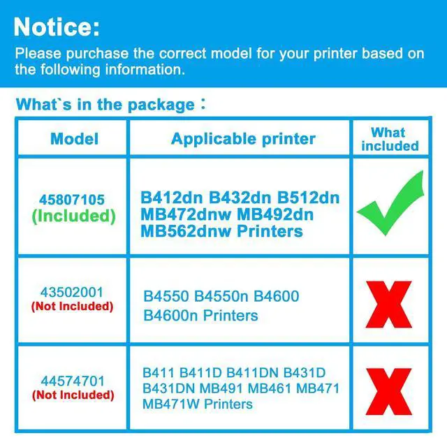 ^^ Compatible Printers: Replacement for OKI B412dn B432dn B512dn MB472dnw MB492dn MB562dnw ^^
