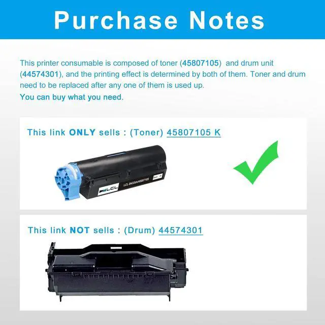 Reliable Quality: LCL 45807105 cartridge uses high quality toner, toner particle size distribution, good mobility, high transfer rate, resulting in a clear image and high gloss print effect; Printing efficiency is high, waste powder rate is low, so as to ensure sufficient page yield.