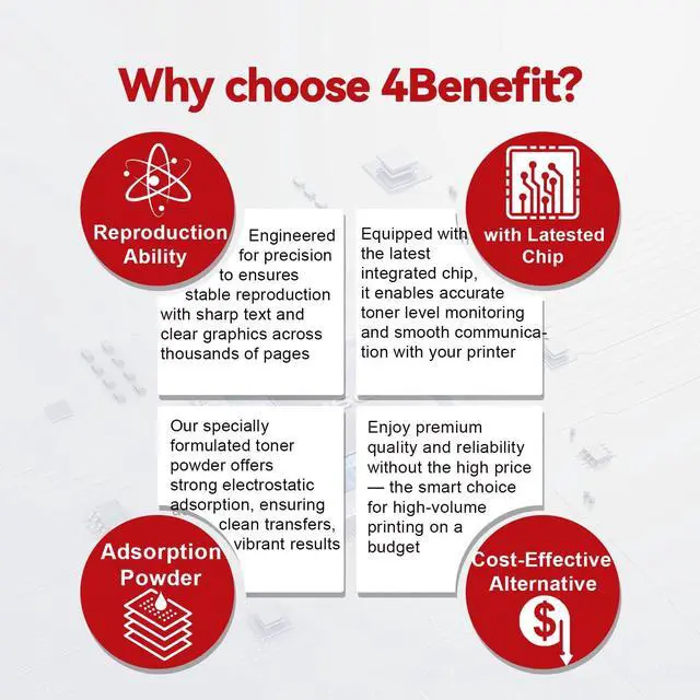 Professional Print Quality: Engineered with premium-grade toner powder and premium components to deliver laser-sharp text, crisp graphics, and smudge-resistant printing results ^^