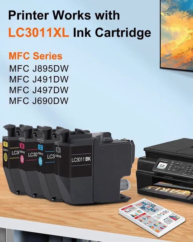 Plug & Play: Engineered to work seamlessly as a replacement for Brother LC3011XL. Features intelligent chips for printer recognition and accurate ink level monitoring. Perfect for MFC-J497DW MFC-J491DW MFC-J895DW MFC-J690DW Printer ^^ Up to 1200 Total Pages -