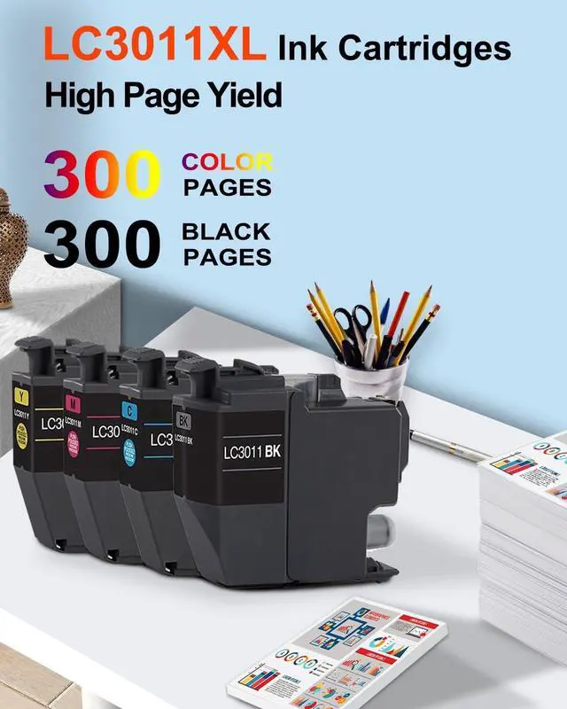 XL High-Capacity 4-Pack: Complete Color Printing Solution. This value pack includes one high-yield LC3011 XL cartridge in each color: Black, Cyan, Magenta, and Yellow. Get everything you need for vibrant, uninterrupted printing ^^ Compatibility -