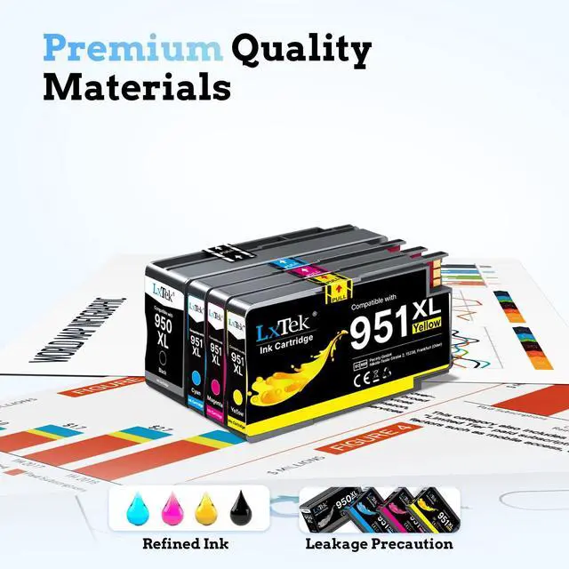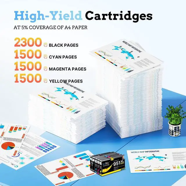 Inkjet Printer ^^: 2300 Pages per 950XL 950 XL Black ink cartridge, 1500 Pages per 951XL 951 XL Cyan Magenta Yellow Ink Cartridge for HP Officejet Pro 8600 Ink Cartridges5% coverage of A4 ^^ LASTEST CHIP VERSION--Replacement for ink 950xl 951xl combo pack equipped with the latest chip version to ensure 950xl 951xl combo full working compatibility with your printer ^^: Outstanding reliability, easy to install and use. Free replacements for HP ink 950xl 951xl combo pack will be sent if there're any quality issues within 2 years warranty ^^ LIFETIME TECHNICAL SUPPORT-- We provide 2 years warranty and lifetime technical support for our 950xl and 951xl ink cartridges combo pack, 100% Satisfaction Guarantee and free exchange for defective 950xl 951xl combo cartridge! Should you need support for your purchase, contact us anytime ^^