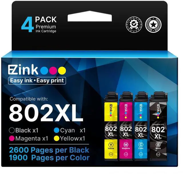 Install: 802 ink cartridges are equipped with the latest smart chip to ensure full compatibility and a seamless printing experience. Just simply insert the cartridge and start printing smoothly to use with epson ink 802 ^^ Premium E-Z Ink 802xl