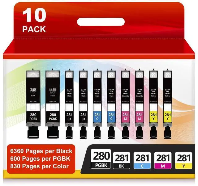 Package Contents: 280 281 ink cartridges combo pack include: 2 x PGBK 280XXL, 2 x Black 281XXL, 2 x Cyan 281XXL, 2 x Magenta 281XXL, 2 x Yellow 281XXL (NOT Include Photo Blue, Total 10 Packs) ^^