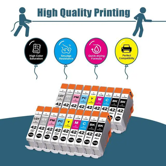 ^^ Excellent Performance: Compatible replacements for canon CLI-42 ink cartridges delivers streak-free documents with razor-sharp text and photo-grade color vibrancy.