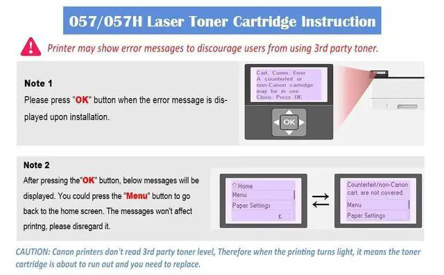 Compatible with Printers Compatible for Canon imageCLASS MF445dw MF445 MF449 MF449dw MF448 MF448dw MF455 MF455dw LBP228 LBP228dw LBP227 LBP227dw LBP226 LBP226dw LBP236 LBP236dw laser printers. ^^ What You Will Get 2 packs compatible toner cartridge 057H with chipreplacement for Canon 057 057H toner cartridge, black. ^^ Page Yield High capacity 10, 000 pages at 5% coverage, A4 paper, letter. (ISO/IEC standard). ^^ Quality Material We use high quality toner from Japan, the toner is pure, fresh, natural and odorless. Every toner cartridge is strictly inspected with industry quality and control processes to ensure a premium print quality.