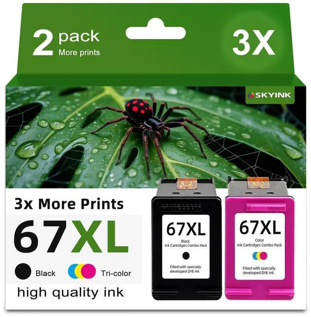 67xl 67 ink cartridges black/color combo pack includes a 67XL color and a 67XL black. ^^ Compatible with DeskJet 1255, 2710e, 2720e, 2721e, 2722, 2722e, 2723e, 2724, 2725, 2732, 2742e, 2752e, 2755, 2755e, 2855 2855e 2800 2800e 2827e 4110e, 4200e4255e 4120e, 4121e, 4122e, 4123e, 4130e, 4132e, 4133e 4152e, 4155e, 4158e; DeskJet Plus 4122, 4132, 4155 printer ^^ Compatible with ENVY 6010e, 6020e, 6022e, 6030e, 6032e, 6034e, 6050e, 6052e, 6055, 6055e, 6075, 6075e, 6420e, 6422e, 6430e, 6432e, 6450e, 6452e, 6455e, 6458e, 6475e; ENVY Pro 6455, 6458, 6475 printer ^^ 650 pages per 67xl black ink cartridge and 450 pages per color cartridge at 5% coverage, premium quality ink delivers crisp text and graphics ^^ We're determined to provide premium products and services for each customer, any questions please tell us.