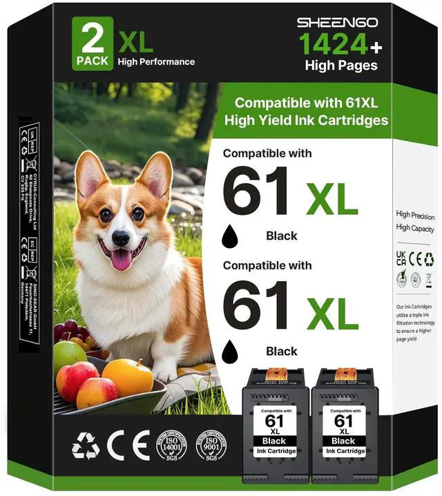 Latest Upgraded Chips: All 61 xl black ink cartridges are equipped with intelligent chips that enable real-time tracking of ink levels. Each 61XL ink cartridge is manufactured in an ISO 9001 certified facility to ensure seamless compatibility and performance with your printer ^^