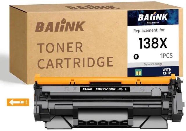 Package Content: 1 Packs 138X W1380X toner replacement for HP 138X black toner cartridge (with chip, not need to replace)