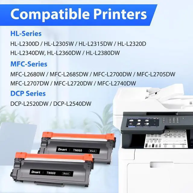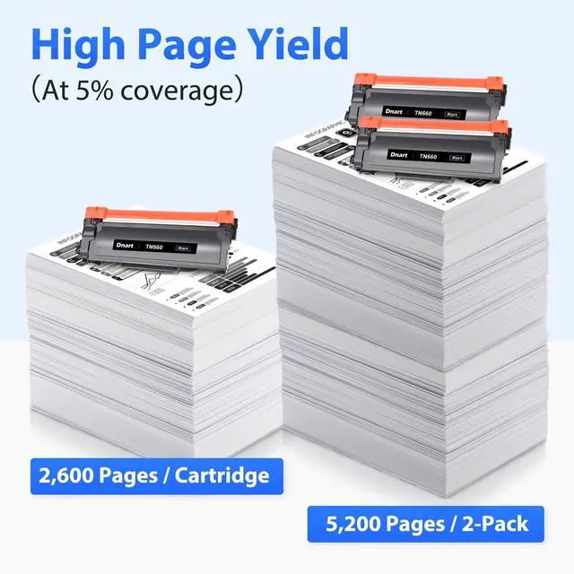 2-Pack: Includes DNART compatible TN660 toner cartridges 2 pack replacement for Brother TN660 TN630 toner ^^ TN660 Toner Cartridge for Printer to