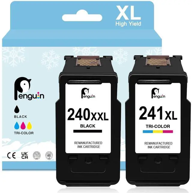 High Capacity & Chip Upgrade: Penguin 240 XL and 241 XL (1 black, 1 color; 2-pack, non-OEM) remanufactured ink cartridges offer high page yields: 240XXL black prints 600 pages, and 241XL color prints 450 pages, 5% A4 coverage ^^ Compatible with Printer MG SeriesMG2120 MG2140 MG2220 MG3120 MG3122 MG3140 MG3220 MG3222 MG3520 MG3522 MG3600 MG3620 MG4120 MG4140 MG4220 ^^ Compatible with