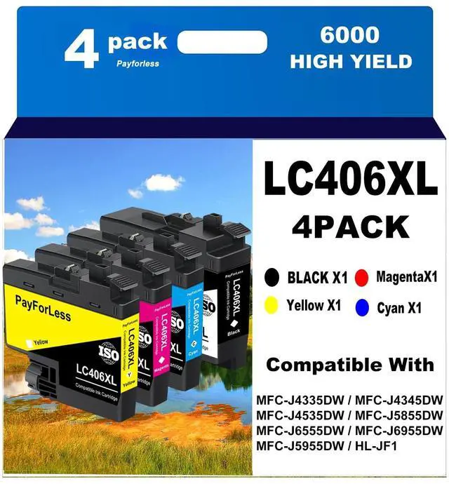 Page Yield: UP to 6, 000 pages per LC406XL LC 406XL Black Ink Cartridge (LC406XLBK) and 5, 000 pages for LC406XL LC 406 XL Color Ink Cartridge LC406XLC LC406XLM LC406XLY High Yield Ink Cartridge (A4 Letter, at 5% Coverage) ^^