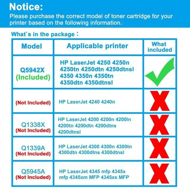 Reliable Quality: LCL Q5942X cartridge uses high quality toner, toner particle size distribution, good mobility, high transfer rate, resulting in a clear image and high gloss print effect; Printing efficiency is high, waste powder rate is low, so as to ensure sufficient page yield.