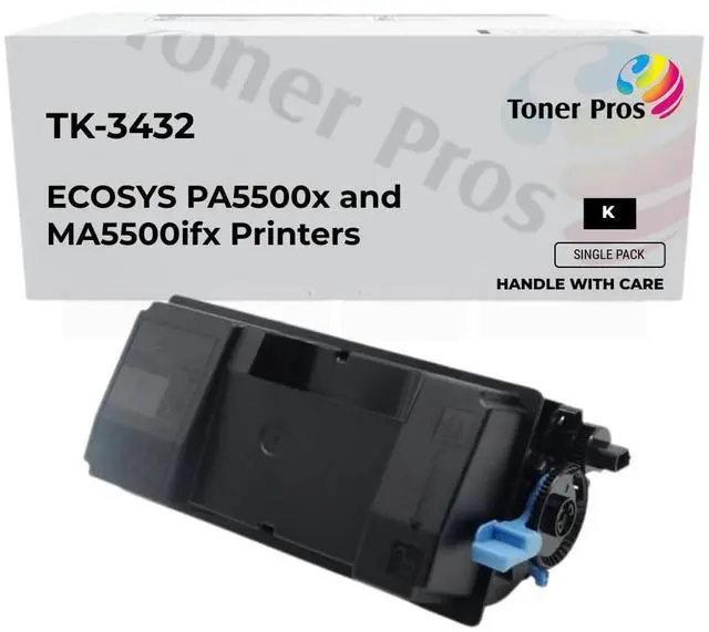 Toner Pros Replacement Toner Cartridge Compatible for Kyocera TK-3432 (TK3432, 1T0C0W0US0) Black Toner Replacement for ECOSYS PA5500x, MA5500ifx High Yield, 21, 000 PagesPrint more and save more with the Toner Pros TK-3432 compatible toner cartridge, designed for the Kyocera ECOSYS PA5500x and MA5500ifx printers. Engineered as a high-quality OEM alternative to Kyocera TK-3432 (1T0C0W0US0), this cartridge delivers up to 21, 000 crisp black pages based on 5% page coverage. Perfect for high-volume office printing, it ensures sharp, professional-quality output with dependable consistency. Enjoy an eco-conscious, budget-friendly solution that keeps productivity high and costs lowwithout compromising on performance or print quality.