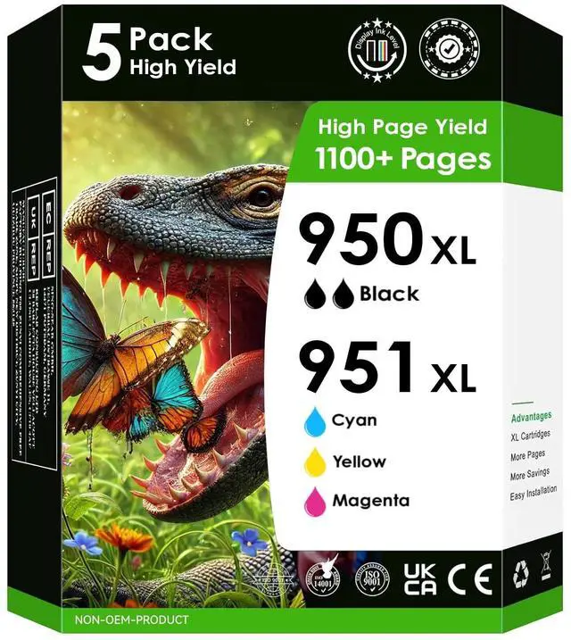 PERFECT COMPATIBLE Replacement 950/951xl Ink REPLACEMENT- This 5 pack combo set contains 2 black (950xl inkjet) and 1 of each color (Yellow, Magenta, and Cyan) 951xl inkjet set. ^^ 50% MORE INK WITH XL & SAVE 75% OFF RETAIL- With XL sized cartridges, you are getting 50% more ink than non XL sized 950 951 inkjets. ^^ INKJETSCLUB 100% SATISFACTION GUARANTEED- We are so confident you will love our inkjet cartridges, we will provide a 1-year no questions asked return for all defective merchandise* Should you need support for your purchase, contact the InkjetsClub team today for free support 7 days a week.