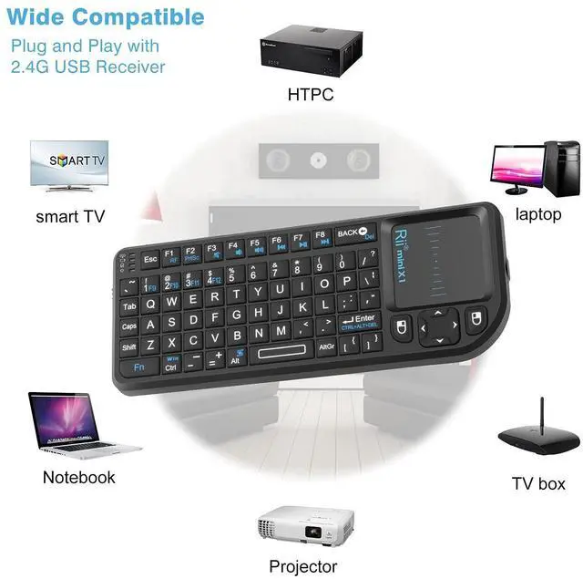 VERSATILE WIRELESS - The Rii Mini X1 Wireless Keyboard features a range of up to 10 metres with 2.4GH z RF technology that provides a reliable and interference-free connection. Plug and play compatible with a variety of devices such as laptops, tablets, smart TVs, game consoles and more.
