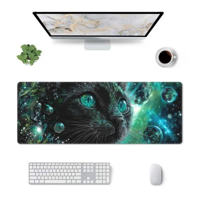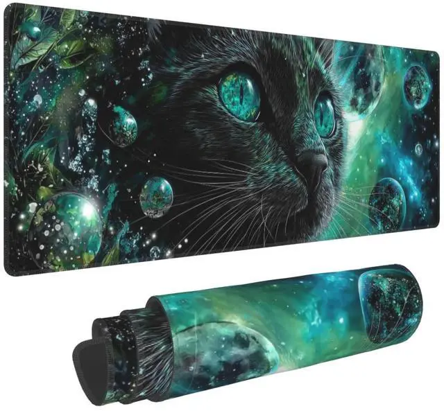 Cat Moon Mouse Pad Extended Large Gaming Mouse Pad XL Stitched Edges for Gamer Home Office 31.5 X 11.8 Inch