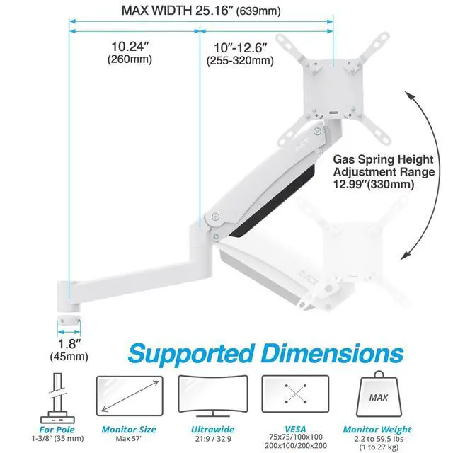 ^^ Supports Ultra-Wide Monitors: Securely holds 17" to 57" flat, curved, or super ultrawide ( 32:9 ) screens up to 59.5 lbs (27kg), perfect for professional and gaming setups. ^^ Pole