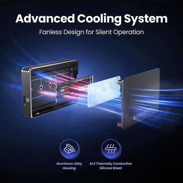 Durable: the fanless all-aluminum NVMe SSD enclosure features double heat dissipation to keep your SSD cool under heavy workloads. Compact and rugged for travel or demanding environments ^^