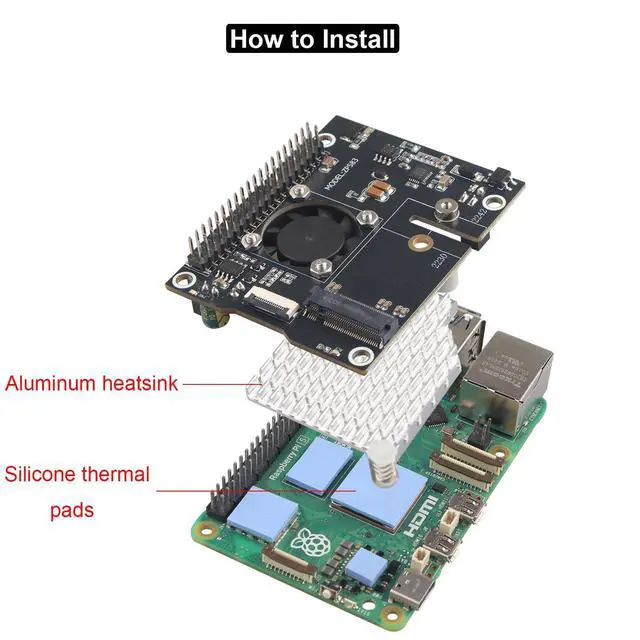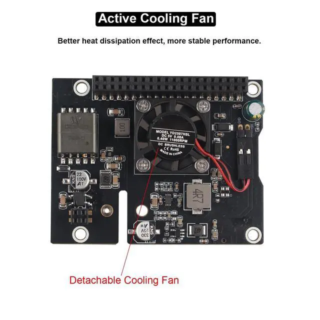 ^^ Equipped with onboard high-speed active cooler, aluminum heatsink and silicone thermal pads for better heat dissipation effect and more stable operation performance. If you dont need to use the cooling fan, you can also disassemble it. ^^ Standard Raspberry Pi 40PIN GPIO header, compatible with Raspberry Pi 5 16GB/8GB/4GB/2GB computer (NOT include Raspberry Pi 5). Pin headers on the top for easy access to other Raspberry Pi expansion boards or modules. ^^ Suitable for use with aluminum case kit. For aluminum enclosure, please refer to model