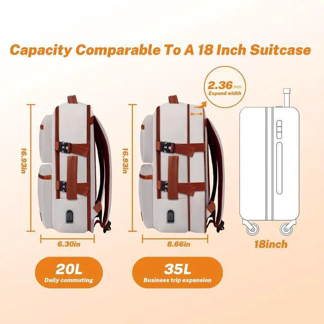Expandable Laptop Backpack Women: This travel backpack for men can be expanded from 20L to 35L. With a side zipper layer design, you can easily pull it to increase the storage space. The backpack with laptop compartment features a large-capacity main pocket and two front zipper pockets, which can hold everything you need. Owning this travel bag means owning the whole world ^^ Breathable Shoulder Strap Laptop Backpack for