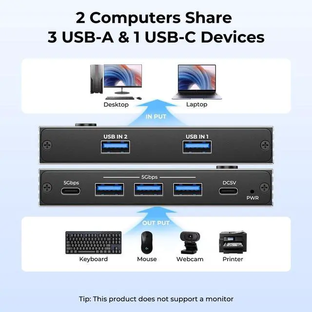 USB devices each time (Note: This is a pure USB switch, and does not support video transmission or monitor switching) ^^ Compatible with USB A &
