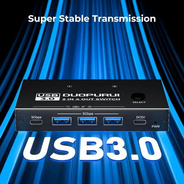 High-Speed Transmission: This USB 3.0 switcher uses USB 3.0 technology and supports a theoretical transmission rate of up to 5Gbps, enabling efficient transmission of large files, high-definition media, and backup data. It is also backward compatible with USB 2.0 / 1.1 devices ^^ Stable Power Supply /