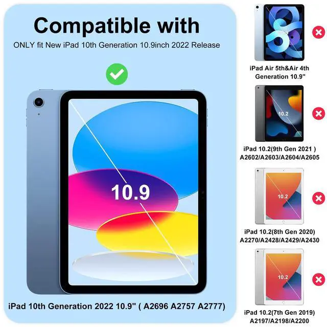 Generation 10.9 inch 2022(Model: A2696 A2757 A2777). NOT compatible with any other devices. Please check your ipad model before purchasing.