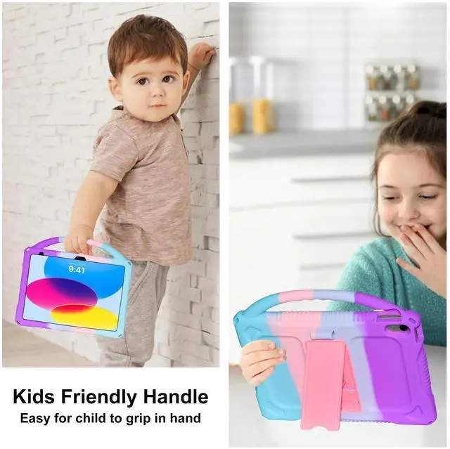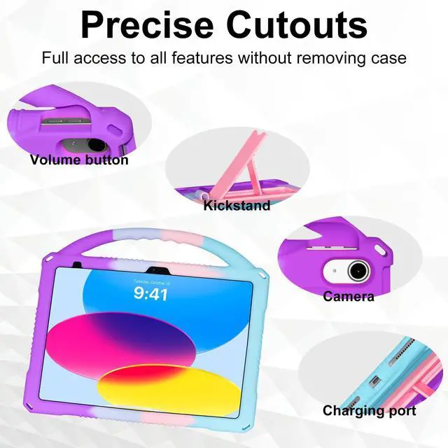 ^^ Built-in Kickstand Handle: Our ipad 10th Gen case come with non-slip handle and built in foldable kickstand, it makes your tablet with multi-angle watching, convenient for typing or watching movies, and super lightweight handle to make tablet easy carry around by children.